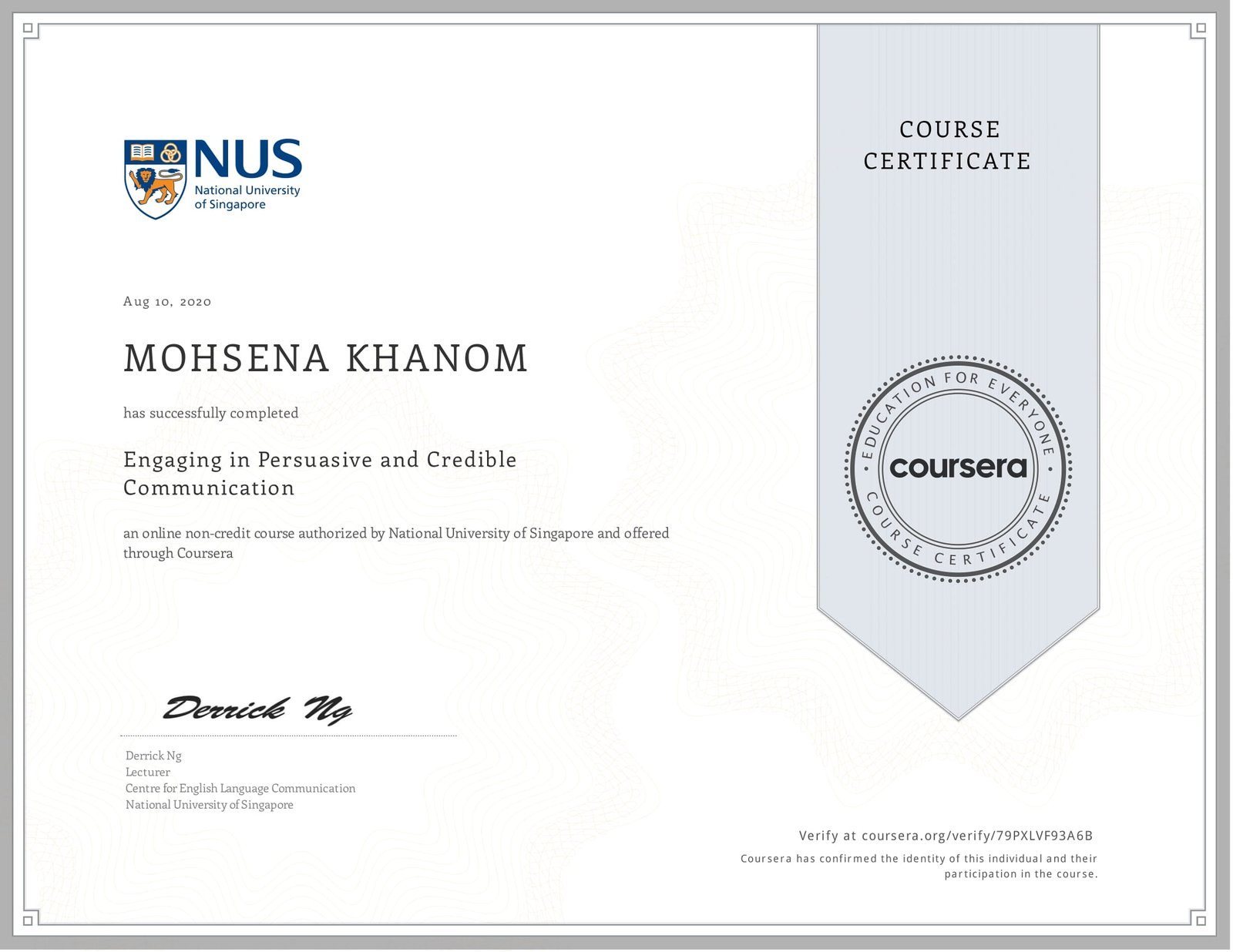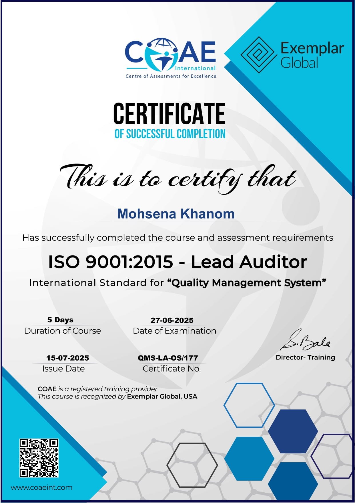 What stood out most was Mohsena’s ability to quickly grasp complex ideas, collaborate effectively with peers, translate learning into practical action in our in-depth tutorial sessions. Her commitment to continuous improvement and her positive attitude made a real difference to the group dynamic.