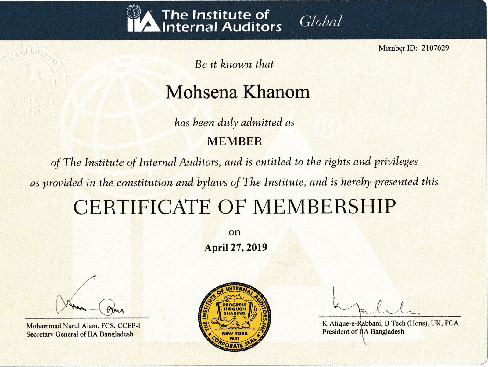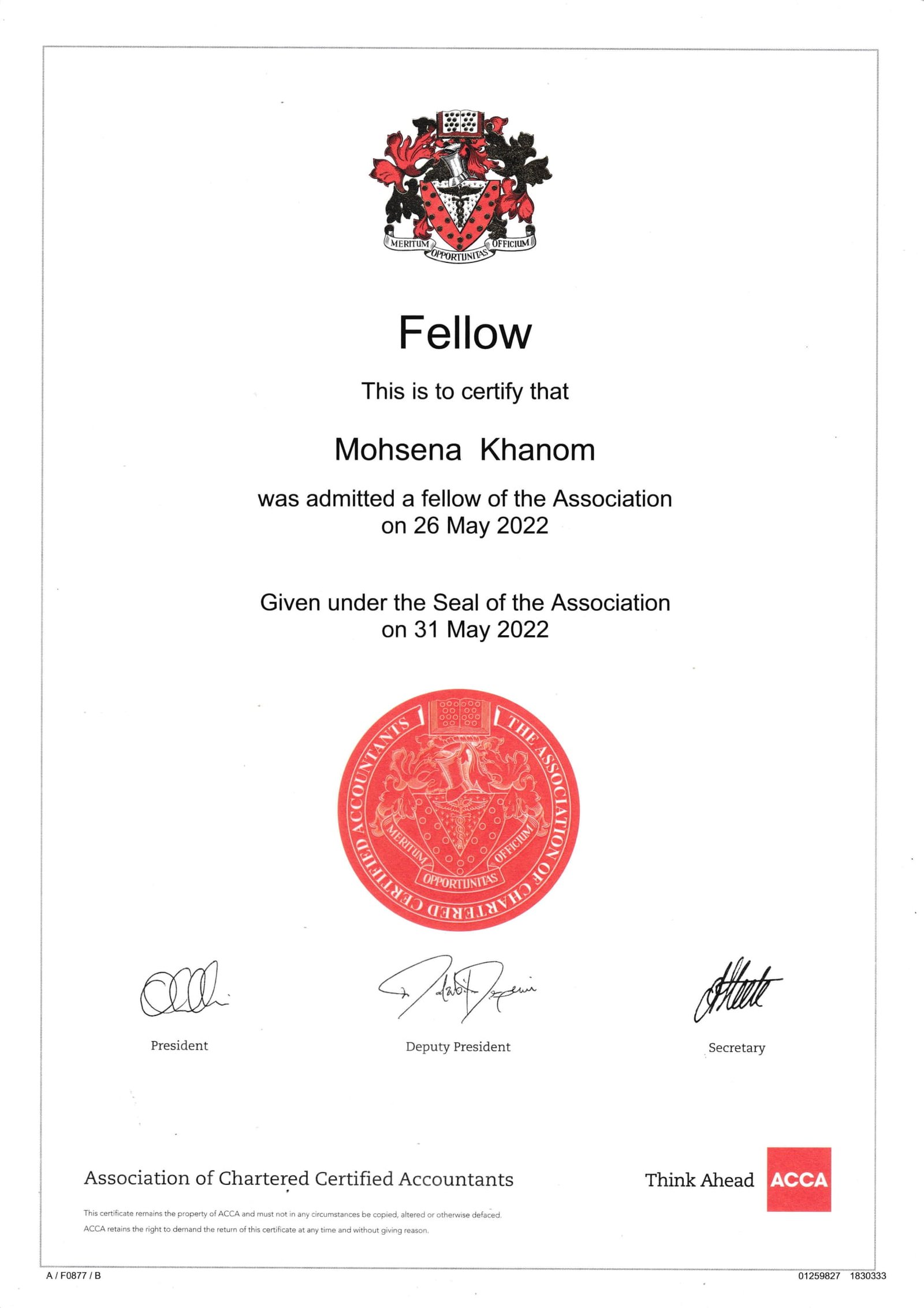 It is with great humility and honor that I endorse Ms. Mohsena Khanom Munna FCCA, a true luminary in our midst. I extend my sincerest wishes for her continued success and prosperity in all her future endeavors.